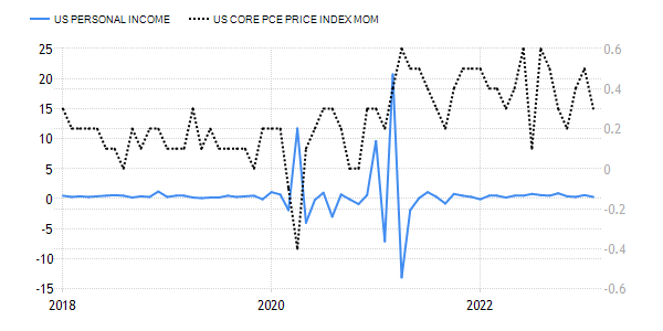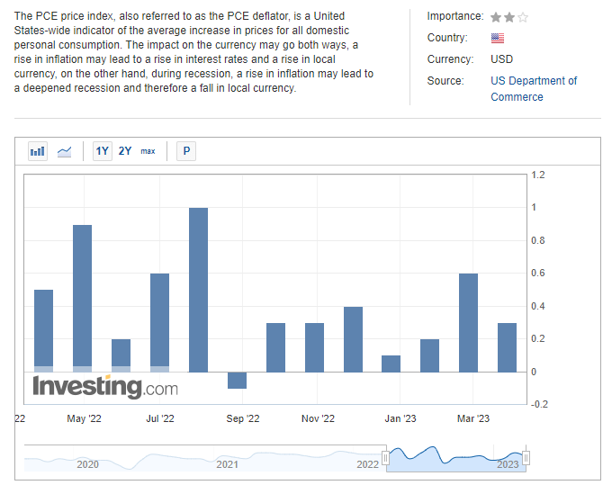 PCE Price Index month-over-month (MoM), including food and energy, came in lower as well at 0.3% versus 0.5% expected.