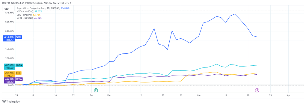 - Super Micro Computer Inc. (SMCI) – 224% Increase YTD