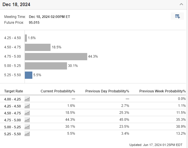 Currently, markets have two rate cuts priced in for 2024. One in September 2024 and one in December 2024.